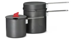 Reactor Kochgeschirr aus harteloxiertem Aluminium ist mit unserem proprietären Wärmetauscher ausgestattet, der den Brennkopf des Reactor Kochers vollständig umschließt. Das daraus entstehende windsichere Design ist der Schlüssel zu der Leistung des Kochers unter allen Bedingungen.